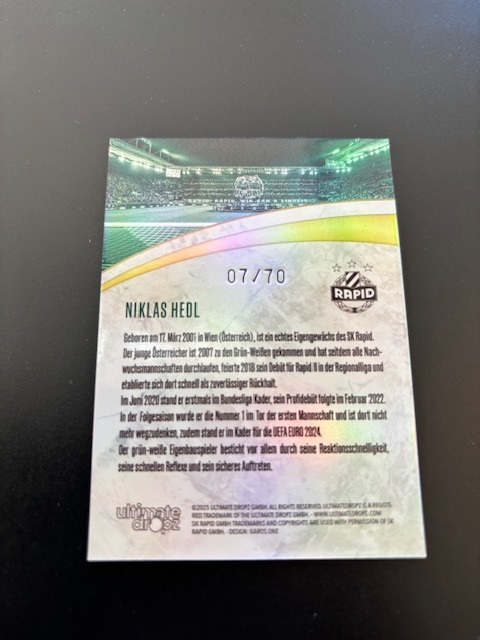 Produktinformationen "SK Rapid Wien - Grün. Weiß. Geprägt. (2025) - Stars - Niklas Hedl 07/70"