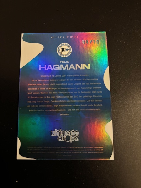 Weiterführende Links zu "This is Arminia (2025) - On Card Signature - Felix Hagmann 44/70"