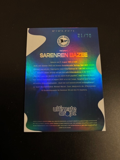Kundenbewertungen für "This is Arminia (2025) - On Card Signature - Noah Sarenren Bazee 21/70"